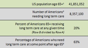 2 Number of Americans needing long term care in 2014: Center for Disease Control and Prevention (2013) Long- Term Care Services. Retrieved (January 2015) fromhttp://www.cdc.gov/nchs/data/nsltcp/long_term_care_services_2013.pdf